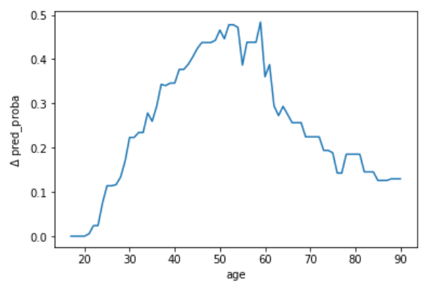 # 나이가 최소일 때의 예측값을 기준으로 하고 그 변화값을 관찰한다